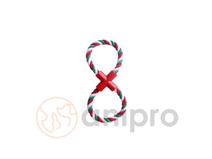 Hračkové lano anipro ve tvaru osmičky bílé/zelené/červené 28 cm, 110-120 g ze 100% recyklované bavlny.