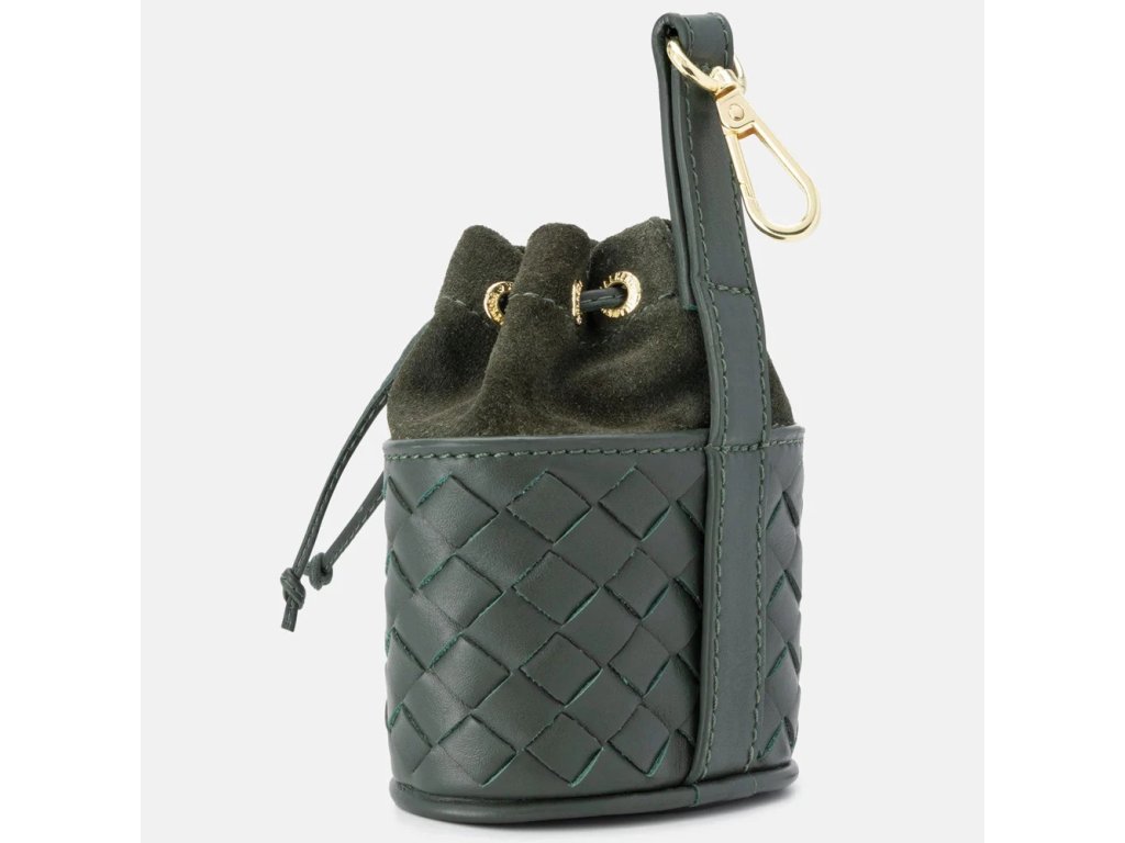 Ručně tkaná tmavě zelená taška na pamlsky z měkké nappa kůže s praktickými možnostmi uchycení pro stylový výcvik psů.