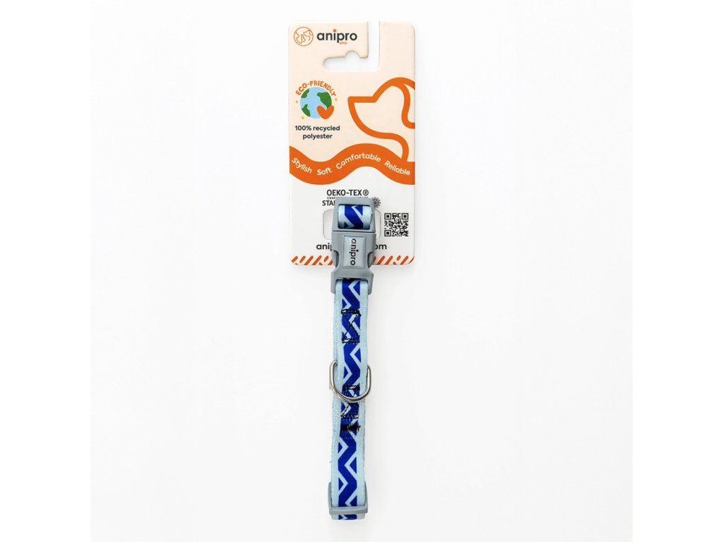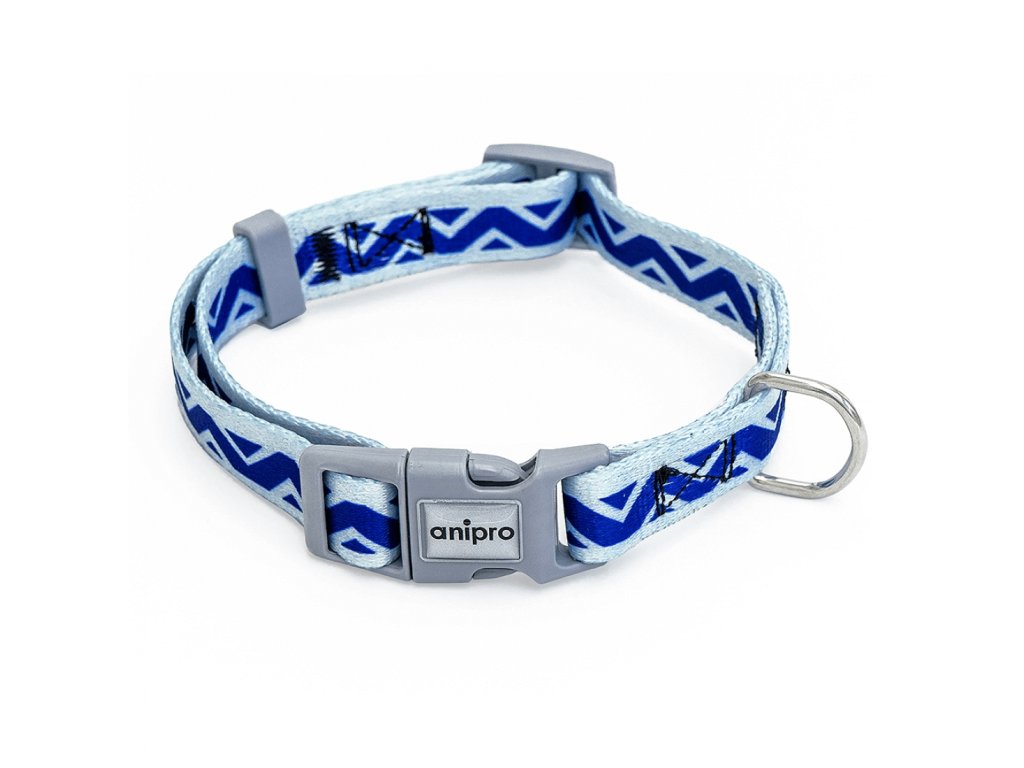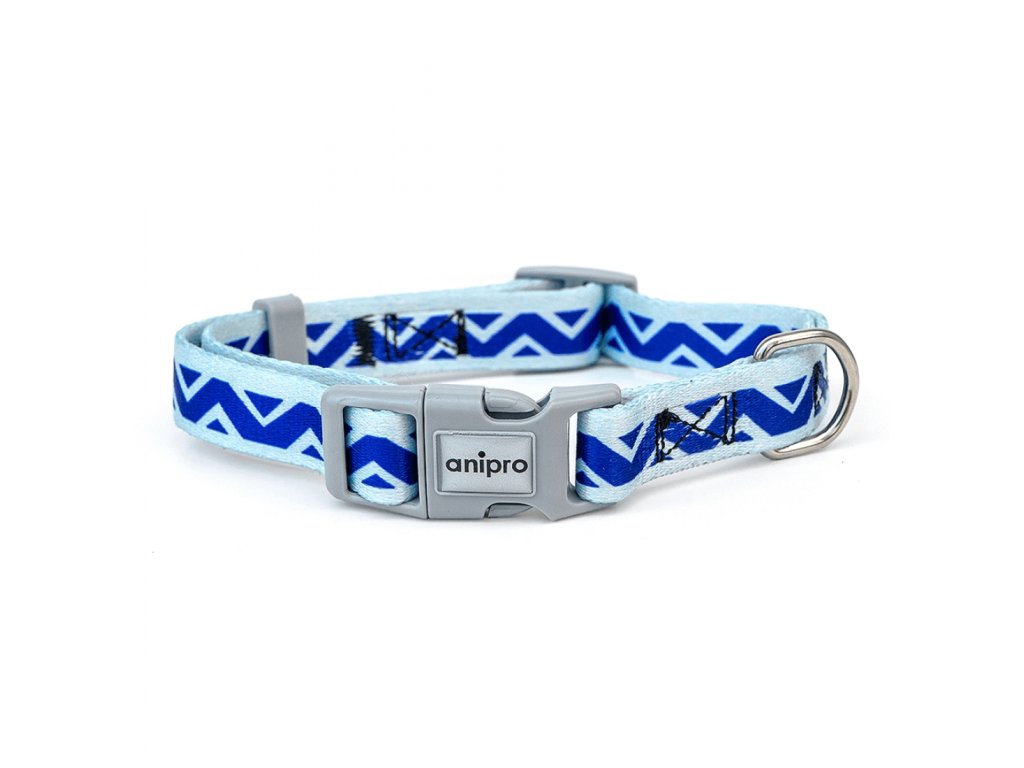 Výrazný žíhaný obojek modro-šedý 10 mm/20-35 cm se šedou přezkou