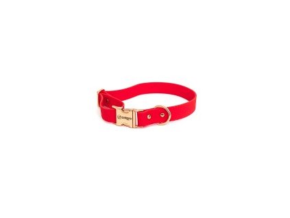 Voděodolný obojek v červené barvě s růžovou zlatou sponou.
